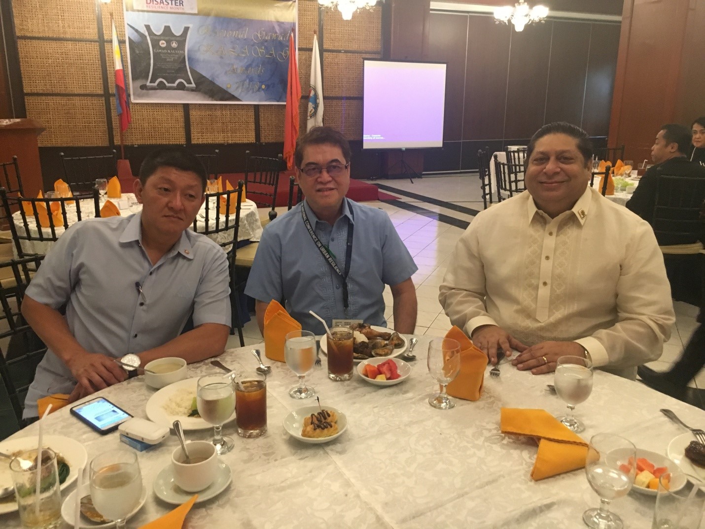 Photo 4. Dr. Raza (right) with City Administrator of Quezon City Hon. Aldrin Cuña (left) and Mr. Henry Lagasca from the QC City Planning and Development Office during the 2018 Gawad KALASAG Award Ceremony.