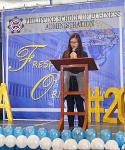 One of our special guests, Ms. Estrelita S. Tan, President of Prima Casa Land & Houses Inc., is one of PSBA-Manila’s alumni. She discussed the Alumni Association of the School and also shared her experience when she was in college and what the school has provided and given her that has helped her get to where she is now. She encouraged the freshmen to study hard and really aim high with their studies.